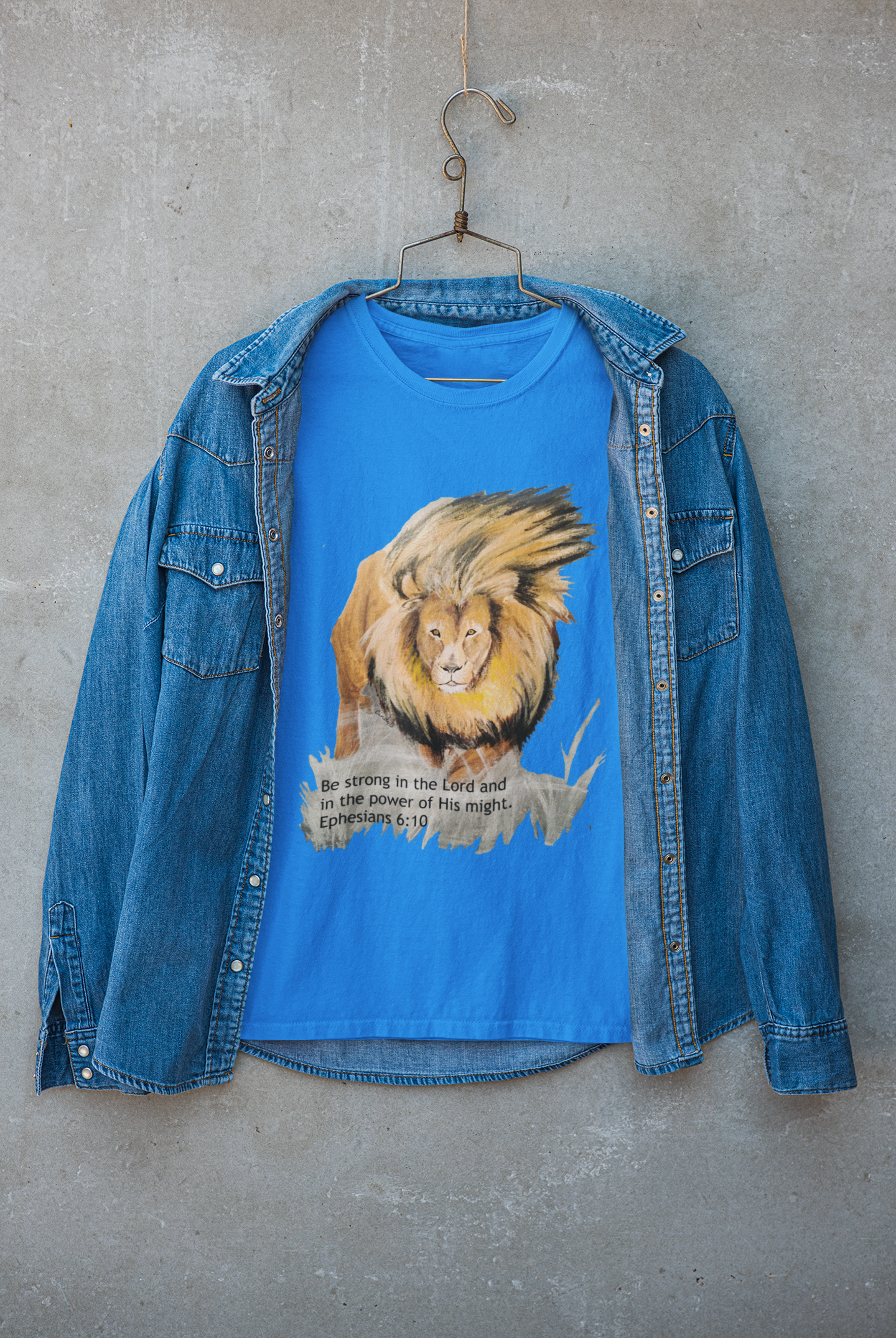 Roar into faith with this bold Lion Be Strong in the Lord tee. Perfect for those who wear their beliefs with confidence and a touch of humor, this shirt combines spiritual inspiration with playful attitude. The striking lion graphic reminds you to find strength in your convictions, whether you're heading to church, the gym, or just living your best life. Comfortable, durable, and conversation-starting—because sometimes the best sermons happen on a t-shirt.